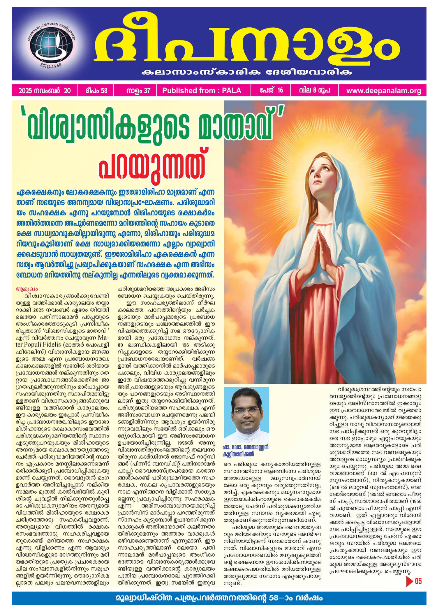 വിശ്വാസകാര്യങ്ങള്ക്കുവേണ്ടിയുള്ള വത്തിക്കാന് കാര്യാലയം തയ്യാറാക്കി 2025 നവംബര്...... തുടർന്നു വായിക്കു